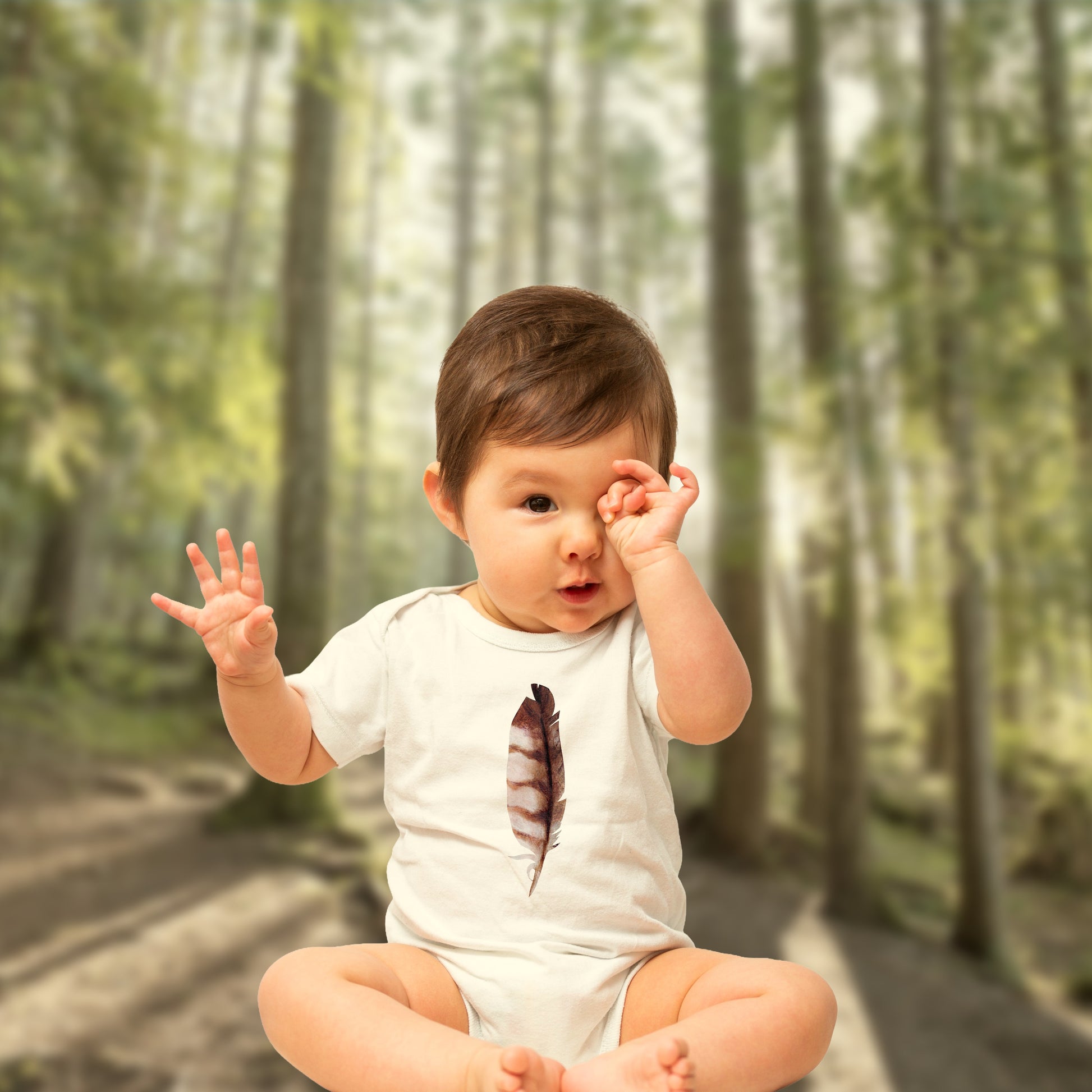 Barred Owl Feather Illustration on Infant Bodysuit | Baby Birder Onesie