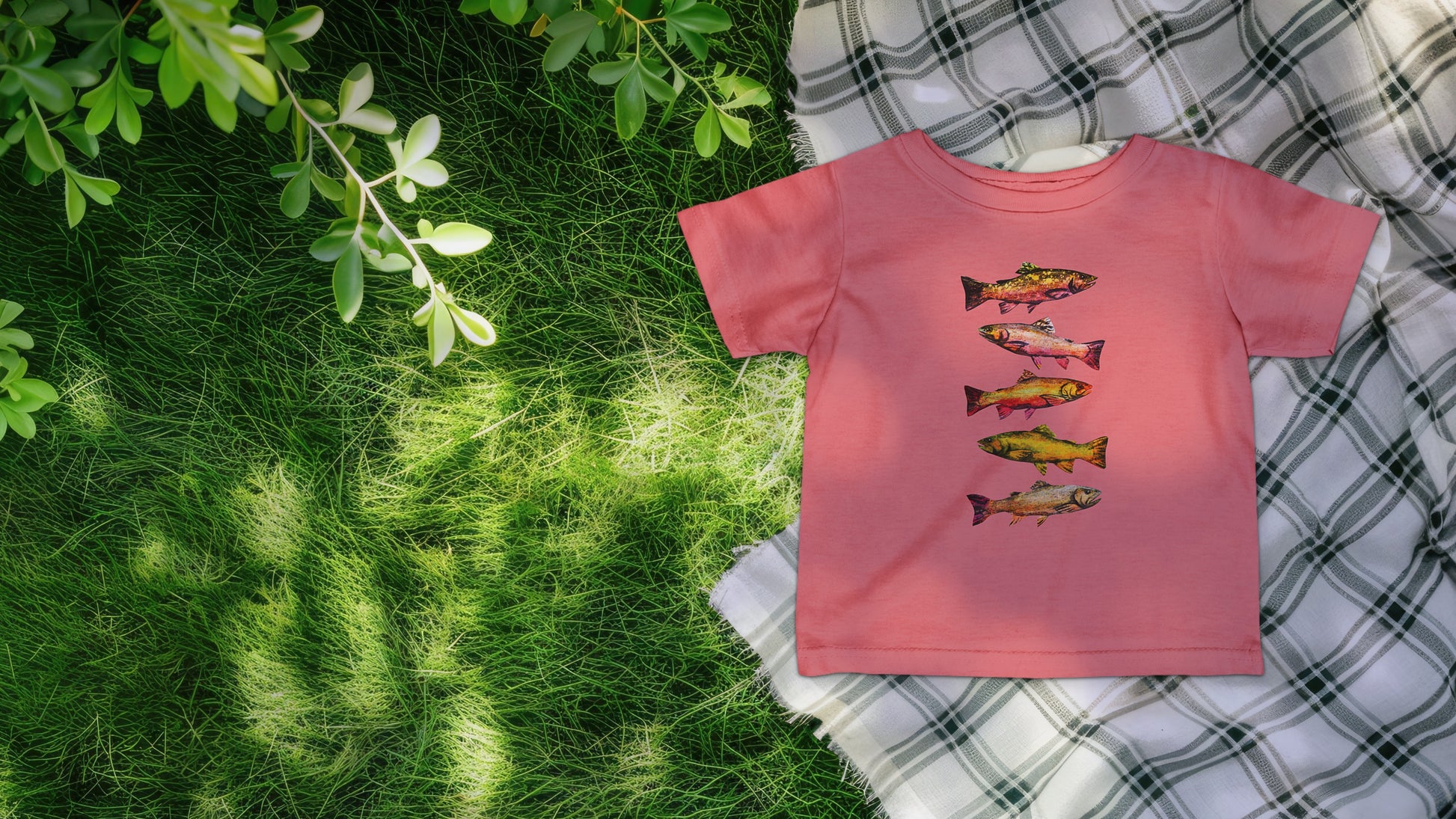 Light, soft, and built for tiny explorers who love the water. This infant tee features a vertical lineup of colorful trout — painted with warm, watercolor tones — that feels like a quiet morning on the lake. The short sleeves and breathable, lightweight cotton let little ones move freely while staying comfortable during playtime, stroller walks, or lazy afternoons by the dock. It layers easily under jackets or over onesies and carries a calm, outdoorsy vibe parents who fish, camp, or simply cherish nature will recognize and reach for again and again.